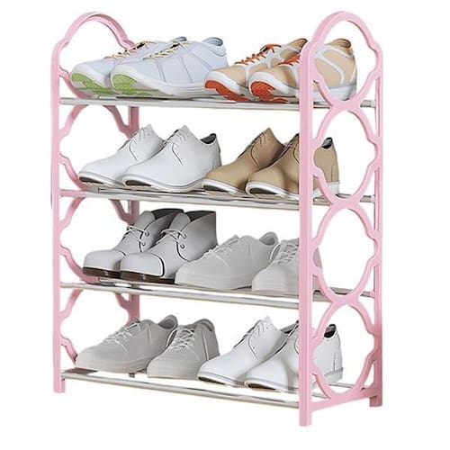 Especificações Técnicas: - Material: Plástico resistente e hastes de aço; - Cor: Rosa; - Quantidade de Andares: 4; - Capacidade: Varia de acordo com o tipo e tamanho dos calçados.