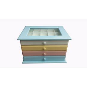 Nossos organizadores irão facilitar seu dia a dia com a organização e segurança que sua coleção precisa, além de proporcionar um ambiente mais sofisticado e elegante para qualquer idade. Produzida com MDF. A parte superior do gaveteiro, a tampa, possui visor com vidro transparente de 2 mm. Laqueado por fora e colorido por dentro podendo trocar de posição as suas gavetas. As gavetas tem divisórias diferenciadas de acordo com que você queira guardar, podendo guardar jóias, relógios, pulseira, anel, brinco e etc.