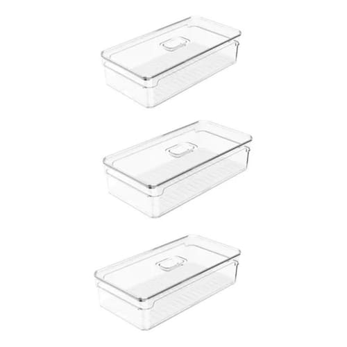 Kit 3 Organizadores De Geladeira Transparentes Caixas Armazenadoras De Frutas Legumes Clear Fresh OU.