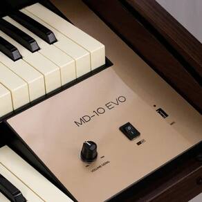 Seguindo a proposta da fabricação de um refinamento, este órgão MD10 EVO possui os agudos mais refinados do que os outros instrumentos que possuem agudos mais fortes. Mesmo colocando os registros no máximo ele continua agradável tanto a sensação de ouvido como a vibração transmitida ao corpo.
