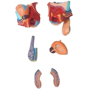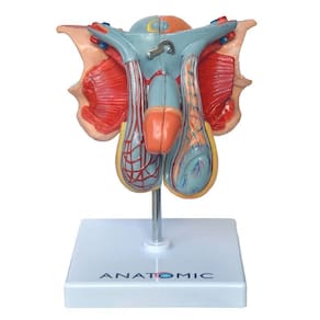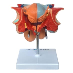 Modelo confeccionado em PVC avançado montado em base fixa, dividido em 4 partes, órgão genital apresenta: