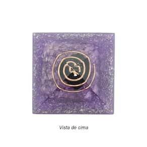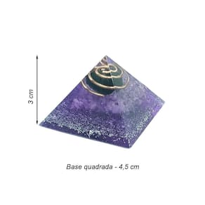 Orgonite Pirâmide 4cm Transmutação Ametista Turmalina Negra Orgonite Pirâmide 4cm Transmutação Ametista Turmalina Negra A Turmalina Negra é uma super pedra de proteção capaz de absorver e dissipar todas energia negativas. Sua vibração neutraliza até os ataques mais fortes de magia negra, inveja e vampirismo energético. Por ter capacidade de captar a energia da atmosfera e emitir partículas conhecidas como Íons, é uma poderosa pedra purificadora de ambientes. Já a Ametista é o cristal da transmutação, da espiritualidade e da conscientização. É uma pedra calmante, pois ajuda a controlar os vícios, os maus hábitos, a dor, a ansiedade e a insônia. Estimula a entrada e aprofundamento em assuntos de espiritualidade, eleva o padrão vibratório da aura, dando equilíbrio geral e harmonia. Orgonite é uma ferramenta utilizada para equilibrar as energias dos ambientes e das pessoas.Funciona como um catalizador que transforma a energia negativa em positiva, absorvendo sentimentos de ganância, inveja, egoísmo, deixando as pessoas mais leves espiritualmente.Melhora a energia dos ambientes, protegendo contra a poluição eletromagnética (colocando próximo da TV por exemplo). Dados Técnicos:Medidas e especificações do produto - Base 4,5 cmAltura total: 3 cmLargura Total: 4,5 cmPeso aproximado: 45 gComposição: resina, cristais, cobre e alumínio. Espiral em cobre. Imagens ilustrativas. Pode ocorrer pequenas variações de cores, devido ao processo de fabricação ser artesanal.