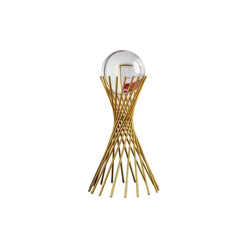 Bola de cristal para decoração. Bola de cristal de arte abstrata moderna com suporte de ferro dourado. Aparência elegante e generosa, perfeita para sala de estar, dormitório ou escritório. Ele pode ser colocado na área de trabalho ou prateleira. Minimalista elegante com base de metal dourado de 29 cm de altura