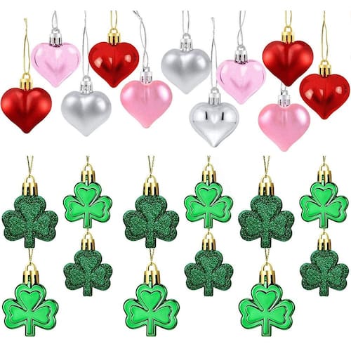 24 peças de ornamentos em forma de coração do dia dos namorados e 24 peças de ornamentos de trevo do dia de São Patrício para Dia dos Namorados e Dia de São Patrício Característica: Uma vez concluída: Um conjunto de produtos inclui decorações do Dia dos Namorados e do Dia de São Patrício, que são baratas e economizam tempo. O design resistente ao desbotamento e à deformação adicionará o efeito decorativo que você deseja. Conjunto de ornamentos de forma abundante: O conjunto de enfeites de coração abundante vem com 24 peças de coração e 24 peças de ornamento de trevo do Dia de São Patrício, perfeito para decorações sazonais de fevereiro, decorações de Natal ou outras ocasiões especiais. Conveniente: Estas bugigangas em forma de coração e trevo verde, você pode pendurá-las na camisa da árvore, janelas, galhos, garrafa de vinho tinto, mesa e assim por diante. Adicione mais toque de atmosfera à decoração da sua casa! Especificações: Material (principal): plástico, Cor: como mostrado na imagem. Tamanhos: 4,5 x 3,8 cm/1,8 x 1,5 polegadas, 5 x 3,5 cm/2 x 1,4 pol. A embalagem inclui: 48 peças (24 enfeites de coração e 24 ornamentos de trevo) Observações: Devido a diferentes monitores e efeitos de luz, a cor real pode ser um pouco diferente da imagem. Como o tamanho acima é medido manualmente, o tamanho real do item que você recebeu pode ser ligeiramente diferente do tamanho acima. - Uma vez completa: um conjunto de produtos inclui decorações do Dia dos Namorados e do Dia de São Patrício, que são baratas e economizam tempo. O design resistente ao desbotamento e à deformação adicionará o efeito decorativo que você deseja. - Conjunto de ornamentos de forma abundante: você receberá 24 peças de enfeites de coração do Dia dos Namorados e 24 peças de ornamentos de trevo, o suficiente para sua necessidade em diferentes festas temáticas ou decoração de festivais - Conveniente: estes enfeites em forma de coração e trevo verde, você pode pendurá-los na camisa da árvore, janelas, galhos, garrafa de vinho tinto, mesa e assim por diante. Adicione mais toque de atmosfera à decoração da sua casa! - Informações sobre o produto: Estes ornamentos são feitos de material plástico em 2 formas, eles são tão duráveis e leves que você pode obter o efeito decorativo que desejar. O tamanho da bugiganga de coração é de 4,7 cm de diâmetro, o tamanho da bugiganga de trevos verdes é de 5 cm - Ampla aplicação: estas decorações de pendurar em coração para decorar o Dia dos Namorados, casamento, noivado, aniversário e muito mais para adicionar uma atmosfera festiva e mostrar seu amor caloroso; estas bugigangas de trevo ficarão fantásticas na árvore ou em qualquer lugar da casa, também um presente exclusivo para uma inauguração de casa, aniversário, ocasião especial ou Dia de São Patrício