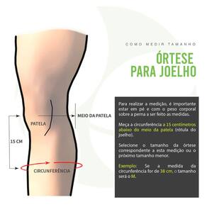 Detalhe Técnico: Direito e Esquerdo Pequeno (S) de 31 a 35,5cm. Direito e Esquerdo Médio (M) de 35,5 a 42,5cm. Direito e Grande (L) de 42,5 a 51cm. Direito e Esquerdo Extra Grande (XL) de 51 a 61,5cm. Circunferência de 15cm abaixo da patela média.