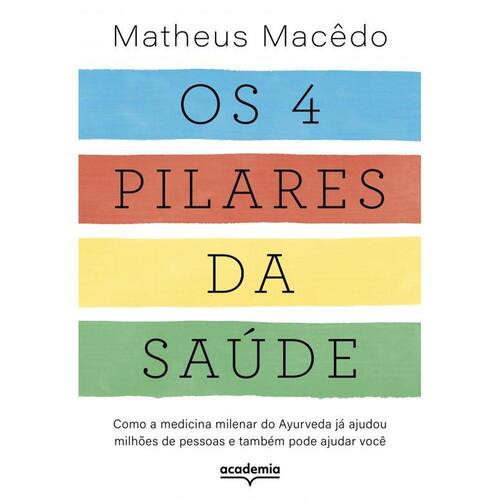 Existem quatro pilares básicos para você viver com saúde: sono adequado, alimentação saudável, movimento inteligente e silêncio. Conheça mais no primeiro livro de Matheus Macêdo, idealizador do Vida Veda, o maior portal brasileiro sobre o Ayurveda. Você já tirou um momento para pensar em como está se sentindo? Para se perguntar como acordou, se bem ou cansado, se tem se concentrado no trabalho ou ficado estufado depois de comer? Independentemente das respostas, tudo isso tem a ver com saúde — e hoje pode ser o dia em que você dará a atenção de que a sua precisa. Buscando facilitar o acesso ao conhecimento milenar sobre hábitos de saúde da medicina Ayurveda, Matheus Macêdo, idealizador do Vida Veda, escreveu Os 4 pilares da saúde, um g uia para compreender como o sono, a alimentação, o movimento e o silêncio devem ser prioritários para um novo jeito de enxergar o corpo e a mente. Neste livro, você descobrirá o quanto a vida pode mudar por meio de práticas simples, sem dietas mal ucas, regras, dogmas ou restrições. A jornada contida nestas páginas é um ponto de virada para você aproveitar a tranquilidade de um sono restaurador, de ter um corpo cheio de energia, de cultivar atenção plena e de desfrutar a vida plena e saudável que você deseja e merece.