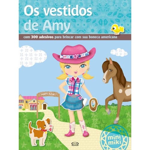 A coleção MINIMIKI chega para mostrar às pequenas leitoras um pouco mais sobre as culturas alguns países. Nesse livro da coleção as crianças podem vestir a Amy e suas amigas com as roupinhas mais lindas. É só escolher o adesivo e colar na personagem. A versão “Os Vestidos” é bilíngue, ensina varias curiosidades sobre os países de origem das personagens e acompanha mais de 300 adesivos diferentes!