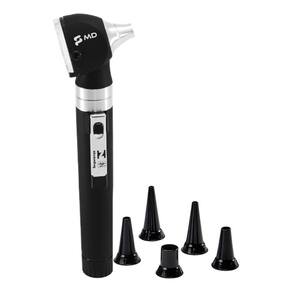 Otoscópio OMNI LED Fibra Óptica Preto MDO básico da medicina é ver os detalhes.Visão clara.Percepção completa.Diagnóstico correto.Incluso 5 Espéculos ReutilizáveisInclui os seguintes tamanhos: 2,5 / 3,0 / 4,0 / 5,0 / 10 mm.Descrição· Dispositivo de elevada performance e inigualável qualidade.· Iluminação através de lâmpada 2.5V LED, de alta intensidade luminosa, alto CRI e temperaturas de cor apropriadas para exames precisos e confiáveis sem distorções da cor do tecido.· Cabos ergonômicos disponíveis em duas versões de alimentação: convencional ou recarregável.· Cabo compatível com todas cabeças diagnósticas da série OMNI MD.· Cabeça trabalhada em aço inoxidável e uma combinação de polímeros termoplásticos robustos, conferindo altíssima resistência à impactos e corrosões e superior durabilidade.· Clip de bolso com interruptor integrado para acionamento liga/desliga e proporciona desligamento automático ao ser fixado no bolso.Benefícios· Iluminação LED de excelente intensidade luminosa de 50.000 Lux, com durabilidade de 50.000 horas.· Transmissão da luz por fibra óptica, sem obstruções, sem reflexos e sem aquecimento.· Cabeça em aço inox e ABS, proporciona melhor durabilidade, resistente a impactos e corrosões.· Lente giratória, permite instrumentação e ampliação da imagem em 3 vezes.· Cabo em aço inox com revestimento termoplástico reforçado, resistente a impactos e corrosões.· Clip de bolso com acionamento on/off e desligamento automático ao ser fixado no bolso.Material da cabeça: ABS e Aço InoxMaterial do cabo: MetalAcabamento do cabo: TermoplásticoTensão: 2.5VAlimentação: 2 pilhas AABotão Liga/Desliga: PossuiClip de bolso: PossuiLente de aumento: 3 vezesComprimento total: 16,2cmPeso total: 85g'.