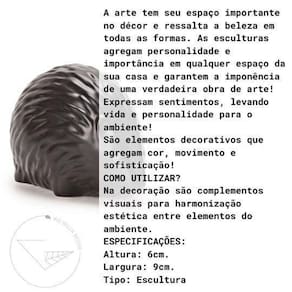 Ourico escultura preto em ceramica 6cm al x 9 la A arte tem seu espaço importante no décor e ressalta a beleza em todas as formas. As esculturas agregam personalidade e importância em qualquer espaço da sua casa e garantem a imponência de uma verdadeira obra de arte