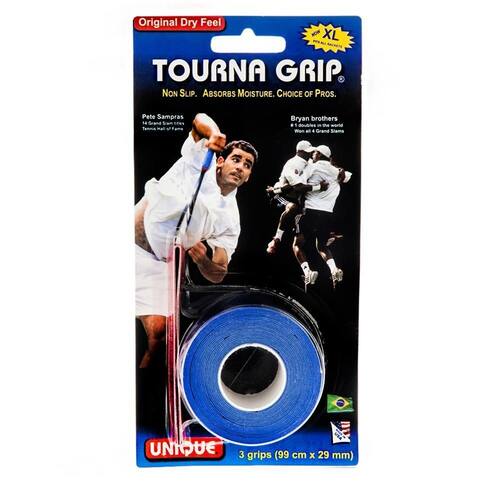 Overgrip unique tourna grip dry azul pack com 3 un. o overgrip tourna grip , é o mais absorvente do mundo, utilizado por jogadores que depende de uma boa absorçâo. Marca: Tourna Unique