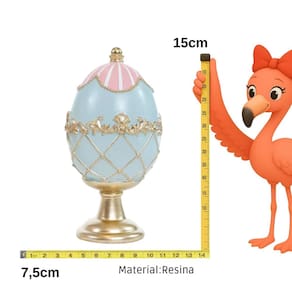 ATENCAOAs cores dos produtos podem sofrer variacoes em funcao das caracteristicas do monitor OBSERVACAO IMPORTANTEOs produtos podem sofrer alteracoes no design pelo fabricanteTodos os nossos produtos sao testados e filmados antes do envioConteudo da embalagem 01 unidade na embalagem OVO DO COELHO DE PASCOA MY LORD FABERGE AZUL 01 UNIDADE 1099906 O Ovo do Coelho de Pascoa My Lord Faberge Azul e uma peca elegante e sofisticada inspirada no estilo classico dos ovos Faberge. Com tonalidade azul delicada e acabamento refinado ele transmite requinte charme e um clima nobre para a decoracao pascal. Ideal para compor mesas aparadores vitrines ou composicoes tematicas o ovo decorativo se destaca como um elemento de destaque que valoriza a decoracao com beleza e personalidade. Uma peca perfeita para quem aprecia detalhes classicos e decoracoes elegantes. Uma escolha ideal para enriquecer a decoracao de Pascoa com sofisticaçao delicadeza e estilo atemporal. MEDIDAS APROXIMADASAltura 15 cmLargura 7,5 cmProfundidade nao se aplicaInformacao fornecida pelo fabricante OBSERVACOESOs objetos que ambientam as imagens nao acompanham o produtoProdutos e cores podem variar daqueles representados na embalagem