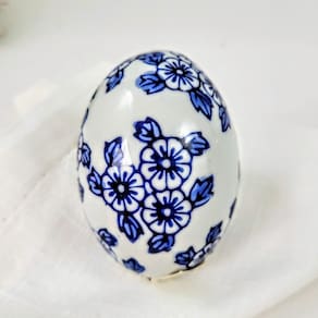 Transforme sua Páscoa com o Ovo de Páscoa Decorativo de Porcelana Azul e Branco Floral e adicione um toque clássico e encantador à sua decoração. Adquira o seu agora e faça desta Páscoa uma celebração ainda mais especial.