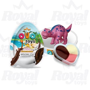 Ovo Toys surpresa Dinossauros Royal inclui um mini dinossauro e Creme napolitano nucita, a melhor combinação de todos os tempos: chocolate, leite e morango.