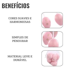 Os ovos são penduráveis, facilitando sua disposição na decoração.