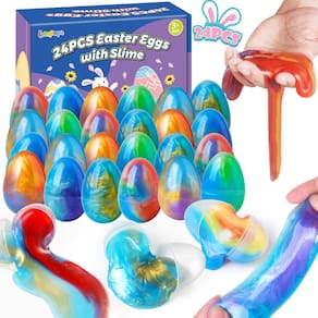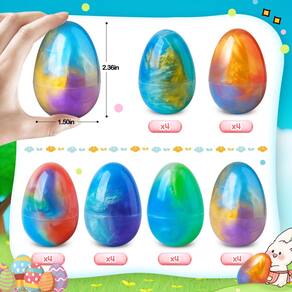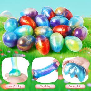 - Pacote super econômico: o pacote inclui 24 peças de ovos de páscoa transparentes pré-preenchidos com 6 estilos de geleca de galáxia. Cada estilo é uma mistura de 3 cores, cheio de mistério e magia. Quantidade suficiente de ovos de páscoa com brinquedos de festa são perfeitos para brincar e criar uma atmosfera mais alegre e calorosa para o dia de Páscoa.
