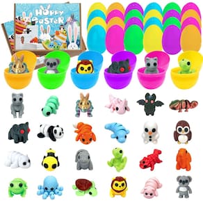 24 peças de ovos de Páscoa pré-recheados, com 24 unidades de minibichos de pelúcia, perfeitos para caçar ovos de páscoa/ovo surpresa. 48 lembrancinhas de Páscoa. Total de prêmios — UMA VARIEDADE DE ANIMAIS: 24 ovos de Páscoa brilhantes cheios de 24 minianimais adoráveis diferentes, incluindo coelhinhos, coalas, leões, corujas, pandas, raposas e muito mais. Incentive as crianças a criarem histórias com essas criaturas - EGG HUNT FUN: esconda ovos em sua casa e quintal ou encha cestas de Páscoa. As crianças ficarão muito animadas em encontrar as surpresas, o que certamente tornará sua caça aos ovos de Páscoa mais divertida e louca por ovos! - MATERIAL: ovos de plástico lisos e de alta qualidade que são opacos para que você não possa ver o que está dentro. Eles se encaixam facilmente e permanecem fechados. Todos eles se encaixam perfeitamente uns nos outros para armazenamento - EXCELENTE DESIGN: fornecemos uma bela caixa para embalar, então esses conjuntos de ovos de Páscoa são adequados como presente para seus amigos, uma ótima alternativa aos doces de ovo de Páscoa - SATISFAÇÃO GARANTIDA: nossos conjuntos de ovos de Páscoa oferecem designs lindos, alta qualidade e atendimento ao cliente atencioso. Priorizamos sua opinião e esperamos prosperar com sua confiança e apoio