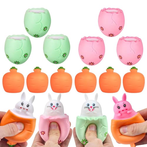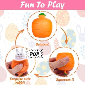 - Brinquedos fidget de coelho cenoura de Páscoa: os ovos de Páscoa em forma de coelho são feitos de material TPR de alta qualidade, não tóxico para garantir que cada brinquedo seja seguro. O pacote de apertar de coelho pop-up pode ser espremido e brincado muitas vezes, e quando a superfície estiver suja, pode ser lavado com detergente neutro ou sabão
