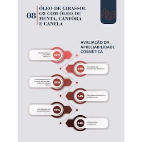 Óleo Nº 08 - Sinergia Edificante Para momentos de mais prazer com seu/sua parceiro/parceiraNosso óleo nº08 é uma composição afrodisíaca que proporciona o aumento do prazer do casal. Seus ativos atuam na higienização íntima masculina e feminina de forma 100% natural.Além disso, é um produto 100% natural ausência de qualquer elemento sintético , não possui conservantes, corantes ou fragrâncias e não foi testado em animais.Modo de usar: Aplicar quantidade suficiente nas regiões íntimas espalhando com baixa pressão das mãos.Composição do óleo:1.Óleo de girassol ozonizado 2.Óleo de menta3.Cânfora4.CanelaDicas para melhor armazenar o seu óleo ozonizado:1.Não expor ao sol 2.Sempre se certificar de ter fechado bem o frasco após o uso3.Manter longe do alcance de crianças Marca: Ozon 23