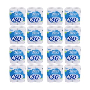 1 Fardo de Papel Higiênico Ness contendo 16 rolos de 30 metros cada.