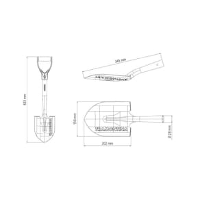 - A pá é fabricada em aço carbono especial de alta qualidade, cortada a laser.