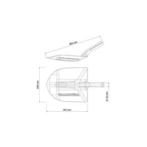 - A pá é fabricada em aço carbono especial de alta qualidade, cortada a laser. - É temperada em todo o corpo da peça, proporcionando maior resistência e menor desgaste durante o uso. - Recebe pintura eletrostática a pó, que tem uma melhor apresentação visual e maior proteção contra oxidação. - A tinta utilizada na pintura é isenta de metais pesados na sua composição, o que minimiza o impacto ambiental. - Pá leve, que gera menos esforço físico do usuário e proporciona maior produtividade.