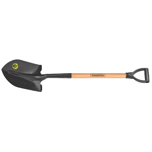 Quem trabalha em reformas e construções precisa da Pá de Bico Tramontina 470/20 em Aço com Cabo de Madeira 71 cm com Empunhadura Plástica Reta Ergonômica! Ela tem corpo produzido em aço carbono e garante a alta durabilidade e resistência necessárias para o seu trabalho. Ela conta com cabo em madeira com empunhadura em plástico, características que oferecem mais conforto no manuseio, deixando assim, seu trabalho mais prático e fácil de ser executado! - A pá é fabricada em aço carbono especial de alta qualidade, cortada a laser.- É temperada em todo o corpo da peça, proporcionando maior resistência e menor desgaste durante o uso.- Recebe pintura eletrostática a pó, que tem uma melhor apresentação visual e maior proteção contra oxidação.- O cabo de 71 cm desta ferramenta, além de possuir ótima resistência, é produzido com madeira de origem renovável.- Cabo com acabamento envernizado, para um melhor acabamento e apresentação do produto. A camada protetora em verniz incolor realça sua tonalidade, concedendo brilho e um toque mais liso ao produto.- Possui empunhadura plástica ergonômica.- Pá leve, que gera menos esforço físico do usuário e proporciona maior produtividade. Observações - A pá é utilizada na agricultura, jardinagem e construção civil, para juntar ou carregar materiais diversos.- Para descarte dos produtos e embalagens siga as orientações de reciclagem vigentes. Características Gerais EAN13 7891117021971 DUN14 17891117021978 NCM 8201.10.00 Peso Líquido 1,1190 kg. Peso Bruto 1,1390 kg. Metragem 0,005920 m³. Dimensões Embalagem (Compr. X Larg. X Alt.) 994x 205x 130 mm. Dimensões Produto (Compr. X Larg. X Alt.) 1.017x 208x 130 mm. Cor 1 000000 Hexa