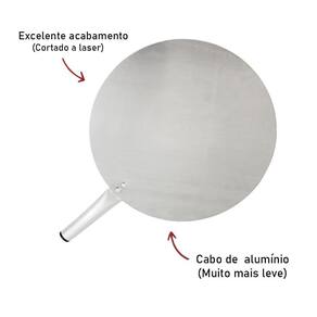 r: a pá tem comprimento total: 53cm, o comprimento do cabo é 18cm, diâmetro do disco de alumínio é de 35cm. Marca: Issi Grill