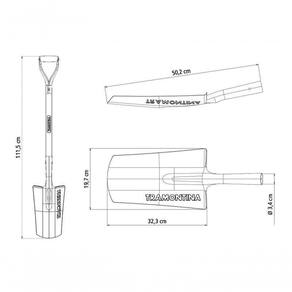 - A pá é fabricada em aço carbono especial de alta qualidade, cortada a laser;