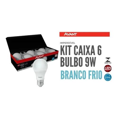 kit 6 lâmpadas led bulbo 9w 6500k bivolt emissão de luz branca avant a linha de lâmpadas led pera é indicada para retrofit de lâmpadas incandescentes ou fluorescentes, em diversos tipos de aplicações para ambientes internos. Especificações técnicas: