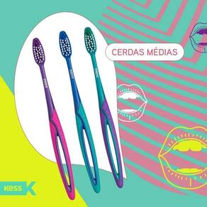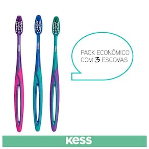Pack c/ 3 Escovas Dentais Basic Plus Cerdas Médias Kess
