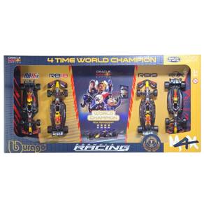 Reviva a emoção das pistas com o Kit Red Bull Racing Max Verstappen 4x Campeão Mundial de Fórmula 1 da Bburago.
