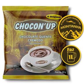 Chocon'up - Chocolate Quente Cremoso Tipo Europeu Pack com 3 unidades de 200g O Chocon'up é uma base pré pronta para o preparo do delicioso chocolate quente cremoso tipo europeu. Em sua formulação de origem europeia, com alto teor de cacau e levemente adoçado para que seu sabor seja único. Versátil Além de deliciosos chocolates quentes cremosos utilize o Chocon'up também para o preparo de cobertura ou recheio de bolos, fondue, panquecas , waffe , crepe, pizza, bebidas preparadas muisturadas com bebibas alcoólicas choconhaque, chocowhisky, chocorum, chocorula, etc no petit gateau , em salada de frutas entre demais receitas. 1 pacote de 200g rende 1 litro , aproximadamente 12 xícaras deste maravilhoso chocolate quente cremoso.