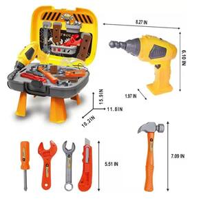 Apresentamos o incrível kit de ferramentas divertido! Este brinquedo é perfeito para pequenos construtores e engenheiros em potencial!