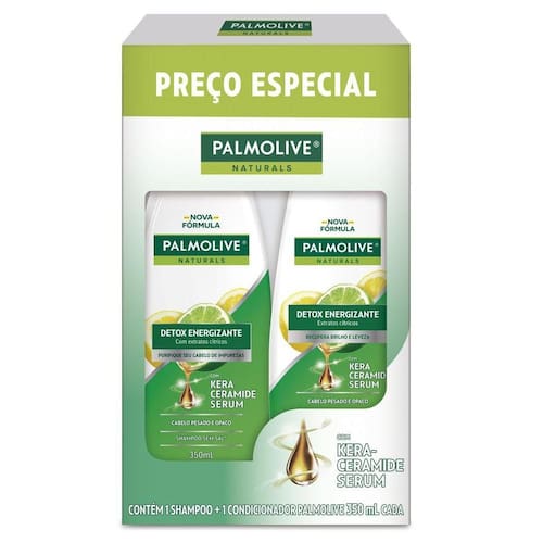 Kit de shampoo e condicionador Palmolive Naturals Detox ideal para cabelos secos e opacos.