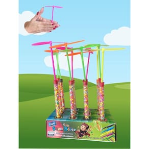 Contém: 5 pacotes com 12 unidades de brinquedo Giro Helice com doce balinha colorida Ideal para o dia de Cosme e Damião, dia das crianças e festas infantis. Material giro helice: Plástico Tamanho aproximado giro helice: 12cm Tamanho aproximado tubo com balinhas: 17cm Cada tubo Hélice com 11 gramas de Balinhas Cor: Modo de Brincar: Encaixar a hélice no palito e girar com as palmas das mãos. Ele sai voando girando. Recomendado para maiores de 3 anos. Inmetro: OPC0006 CE-BRI/1QB6118 NM 300/2002 Marca: Não Informado