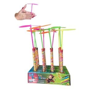Contém: 5 pacotes com 12 unidades de brinquedo Giro Helice com doce balinha colorida Ideal para o dia de Cosme e Damião, dia das crianças e festas infantis. Material giro helice: Plástico Tamanho aproximado giro helice: 12cm Tamanho aproximado tubo com balinhas: 17cm Cada tubo Hélice com 11 gramas de Balinhas Cor: Modo de Brincar: Encaixar a hélice no palito e girar com as palmas das mãos. Ele sai voando girando. Recomendado para maiores de 3 anos. Inmetro: OPC0006 CE-BRI/1QB6118 NM 300/2002