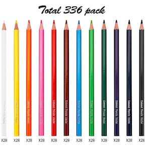 - 336 peças de lápis de cor variados, não tóxicos, pré-afiados, de qualidade educacional, vêm em uma caixa.