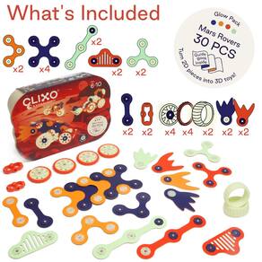 - Pronto para o espaço e para viagens – os Clixo Mars Rovers são projetados para brincar em qualquer lugar! Leve, empilhável e agora brilha no escuro, estas peças são perfeitas para viagens ao parque, férias em família ou um dia divertido na escola. Não é necessário superfície plana — as crianças podem construir seus rovers espaciais brilhantes em qualquer lugar, tornando-os um companheiro ideal para brincadeiras criativas onde quer que estejam.