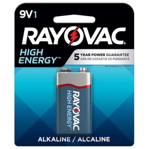 - 1 pacote de pilhas alcalinas Rayovac de 9 volts de alta energia