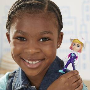- REVELAÇÃO DE HERÓI: No programa pré-escolar Spidey and His Amazing Friends, da Disney Junior, nossos heróis mantêm sua identidade em segredo. Com os 2 pacotes Hero Reveal, as crianças podem fingir que estão revelando a versão infantil de um de seus heróis favoritos; Gwen Stacy