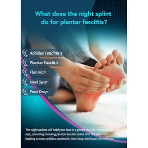 - Que dose a tala noturna faz para fascite plantar? - As talas noturnas não são invasivas e livres de medicamentos, o que as torna tratamentos conservadores altamente eficazes para fascite plantar. A elasticidade oferecida pelas talas noturnas ajuda a manter o comprimento da fáscia plantar mesmo durante períodos de inatividade. Também promove o fluxo sanguíneo, reduzindo a inflamação e a dor. Ao evitar o aperto da fáscia plantar durante o descanso, você deve sentir menos dor ao dar os primeiros passos pela manhã. Os outros usos incluem ajudar a tratar tendinite de Aquiles, queda do pé, esporão de calcanhar, arco plano, etc.