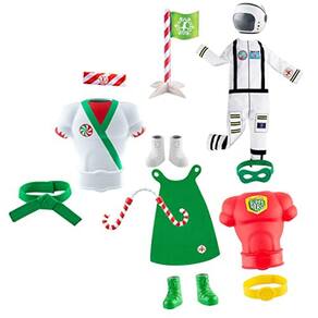 Com o conjunto Karate Kicks, seu Elf Escoteiro está pronto para mostrar seus socos polares treinados e chutes kringle! Eles aprenderam com o melhor - até o Papai Noel tem um Cinturão Negro! Inclui bandana de tecido alegre, peça de peito de músculo plástico com cinto de tecido, e nunchaku de hortelã-pimenta!