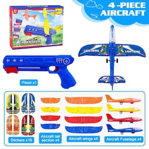 Brinquedos de avião 2 em 1 - Nosso brinquedo planador é equo com 4 cores diferentes de aviões de espuma planadora amarelo, verde, laranja e azul e 1 lançador de aviões. Ao lançar aviões manualmente ou pilotá-los com o lançador, as crianças podem cultivar sua coordenação olho-mão, observação e senso de direção