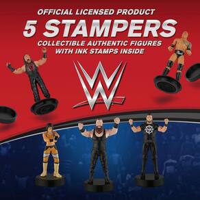 Torne-se parte da sensação Nada faz o sangue bombear como uma partida da WWE. Mergulhe no com o PMI! Seus selos da WWE permitem que você lute junto com seus favoritos com calças de selo autotintadas e blusas de bonecos de ação. Equos com tecnologia de autopintura, seus carimbos da WWE imprimem um toque de personalidade em qualquer projeto. Na parte inferior da figura, há um selo do rosto do campeão com tinta preta, vermelha, roxa ou azul suficiente para durar cerca de 200 selos. Fortaleça papéis timbrados, fortaleça os papéis escolares, decore artesanato e muito mais!