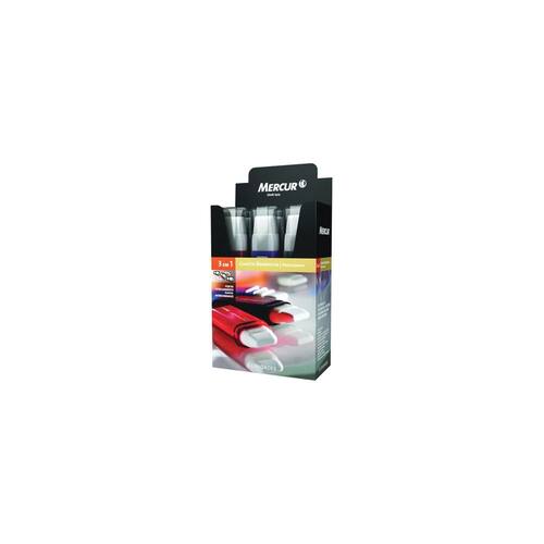 Borracha caneta Branca Executiva C/3 Refis Mercur Possui três cargas de borracha. Para recarregar, basta remover a primeira carga já gasta e encaixar a outra na extremidade oposta. Com tampa que protege a borracha evitando que suje quando em contato com o lápis dentro do stojo . Borracha suave e macia, resistente à dobra e não quebra com facilidade. Possui refil que pode ser adquirido separadamente. Indicada para apagar escrita a lápis e lapiseira, e qualquer graduação de grafite. Ean: 7896342435968