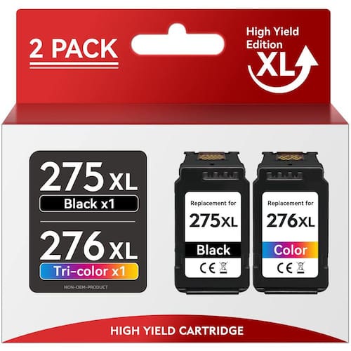 Conteúdo do pacote: 1 pacote de cartucho de tinta Substituição para tinta preta 275xl 1 pacote de cartucho de tinta Substituição para tinta Tricolor 276xl Adequado para impressoras Canon: para a série PIXMA TS3500 TS3520 TS3522 TR4700 TR4720 TR4722