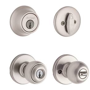 Kwikset 96900-320 Puxador de entrada polo e fechadura de cilindro único pacote combo em níquel acetinado