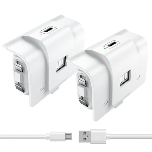 Pacote de bateria do controlador recarregável para Xbox One/Xbox Series X|S - ? Versão mais recente - Maior compatibilidade: as baterias recarregáveis do Xbox vêm com 2 tipos de tampa de bateria. Compatível com os controles Xbox novos e anteriores, incluindo os controles Xbox Series X|S, Xbox One/S/X e Xbox One Elite. Um bom kit de substituição para todos os controles Xbox - 😊 Fácil de usar - 2 métodos de carregamento disponíveis: (1) Basta conectar o cabo micro-USB fornecido à bateria dentro do controle para continuar jogando. (2) Carregue a bateria separadamente - 🎮 Maior tempo de reprodução - Carregamento mais rápido: as baterias recarregáveis de longa duração levam apenas 3-4 horas para serem totalmente carregadas. E 25-30 horas de tempo de reprodução constante garantidas quando estiver totalmente carregado. Continue a ação com a bateria recarregável do Xbox e o cabo micro USB. Recarregue enquanto joga ou entre partidas. Basta jogar compulsivamente seu jogo favorito! - ? Bateria confiável - Carregamento estável: durou mais de 1000 ciclos recarregáveis. Sistemas integrados de proteção contra sobretensão, curto-circuito e sobrecorrente, evitando problemas como superaquecimento e sobrecarga. Garanta um carregamento noturno sem preocupações. Além disso, o indicador da bateria fica VERMELHO para VERDE quando totalmente recarregada (tensão de entrada: 5V) - ? O que você receberá: 2 × bateria do controle Xbox branca, 2 × porta da bateria branca para o controle Xbox Series X, 2 × porta da bateria branca para o controle Xbox anterior, 1 × cabo micro USB preto, garantia de 12 meses e atendimento contínuo ao cliente