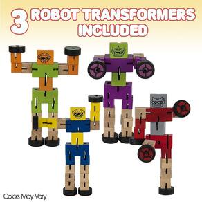 Pacote de 3 robôs de brinquedo de madeira ArtCreativity com Toy Cars Kids 3+