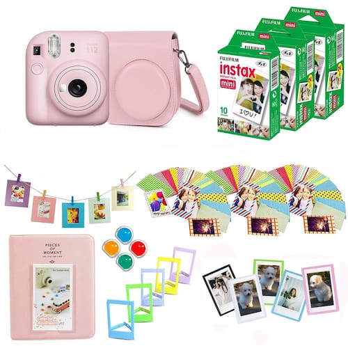 IMPORTANTE: Se for um produto elétrico, ele pode ser compatível com uma tomada de 110 volts. Se utilizado fora dos Estados Unidos, pode ser necessário um conversor de voltagem para garantir a operação adequada. Verifique se o produto que você está comprando é elétrico antes de considerar essas informações. A NOVA FUJIFILM MINI 12 apresenta um corpo recém-projetado com configurações de ajuste automático para fotos ainda mais brilhantes. O ESPELHO DE SELFIE EMBUTIDO permite que você configure perfeitamente suas selfies. Não há necessidade de colocar uma lente de close-up. Basta estender o cilindro da lente para fora. EXPOSIÇÃO AUTOMÁTICA - O Mini 12 selecionará automaticamente a velocidade perfeita do obturador em qualquer ambiente. O Mini 12 captura fundos claros e objetos brilhantes, mesmo em ambientes com pouca luz. Decore suas fotos — O pacote de design incluído inclui 60 molduras adesivas adesivas, 10 molduras para pendurar em papel pastel, 5 molduras de plástico para mesa e 5 molduras magnéticas. O pacote inclui câmera, 50 folhas de filme, estojo correspondente, conjunto de filtros de 4 peças (azul, vermelho, verde, amarelo), 5 molduras magnéticas, álbum, conjunto de molduras suspensas de 10 peças, conjunto de molduras de mesa de 5 peças e 60 molduras adesivas para adicionar tempero e personalidade às suas fotos